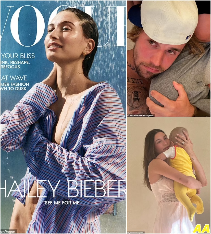 Speaking for the first time about the birth, Hailey told Vogue: ‘That s**t was so crazy. That was not fun. They broke my water. I went into labor and I labored for a few hours. No epidural, nothing.’